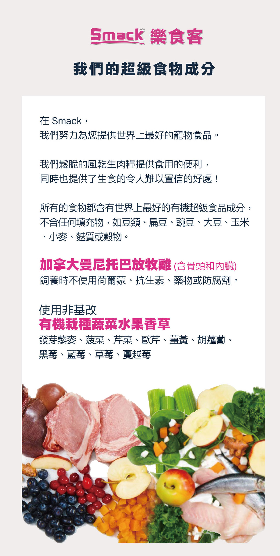 *頂級肉類蛋白質來源 + 有機蔬果香草