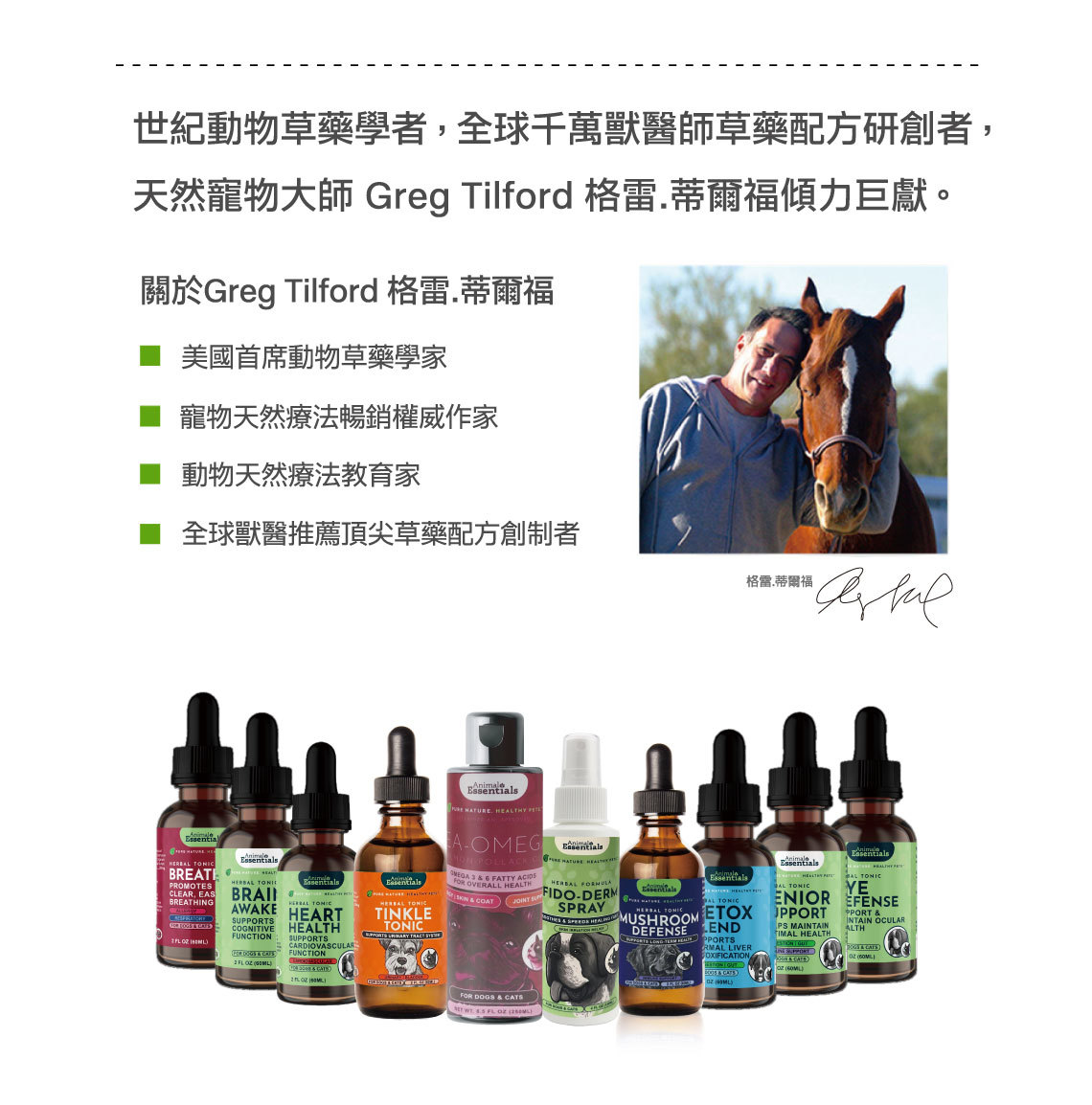 Greg Tilford 格雷.蒂爾福大師是寵物天然植物健康研發的先行者,他堅信天然保健才是使寵物獲得更美好健康生活的根本之道。