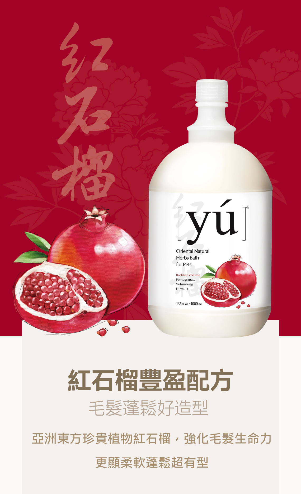 紅石榴豐盈配方寵物洗毛精推薦給特別需要毛髮蓬鬆造型感度的寵物,讓毛孩毛髮澎澎柔柔的。