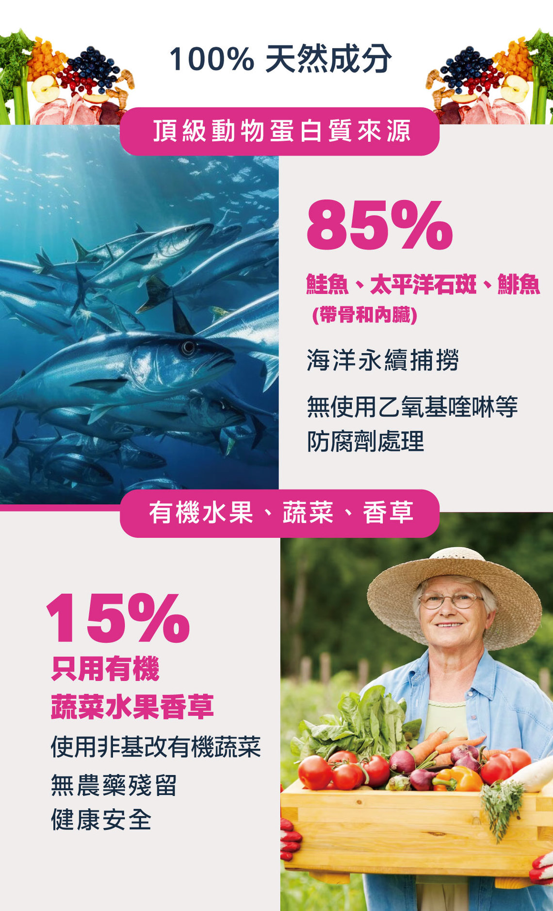 *頂級肉類蛋白質來源 + 有機蔬果香草
