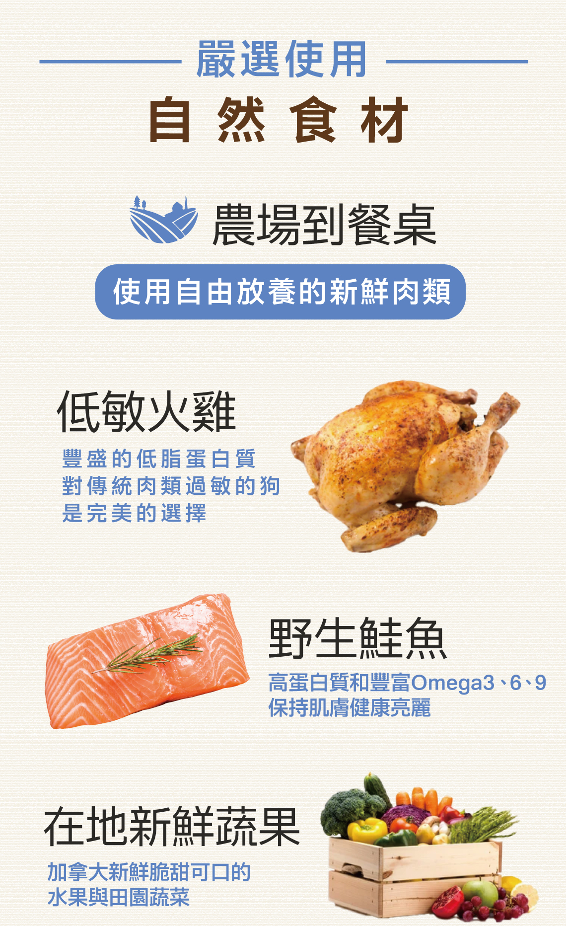 從農場到餐桌的原野火雞,低敏配方,呵護消化道,保護心臟,豐富Omega 3、6、9,支持大腦健康,健康發育,豐富螯合礦物質維他命、必需胺基酸,泌尿健康守護,敏感肌推薦!