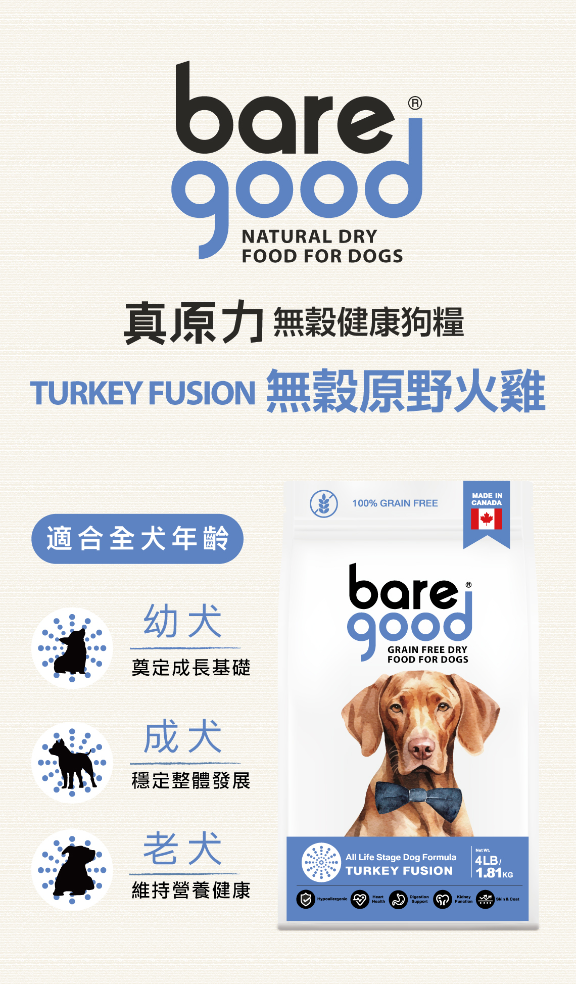 #真原力 #baregood #狗飼料 #加拿大進口 #狗糧  #狗鮮糧 #泌尿守護 #肌膚健康 #低敏 #低脂 #火雞 #低脂